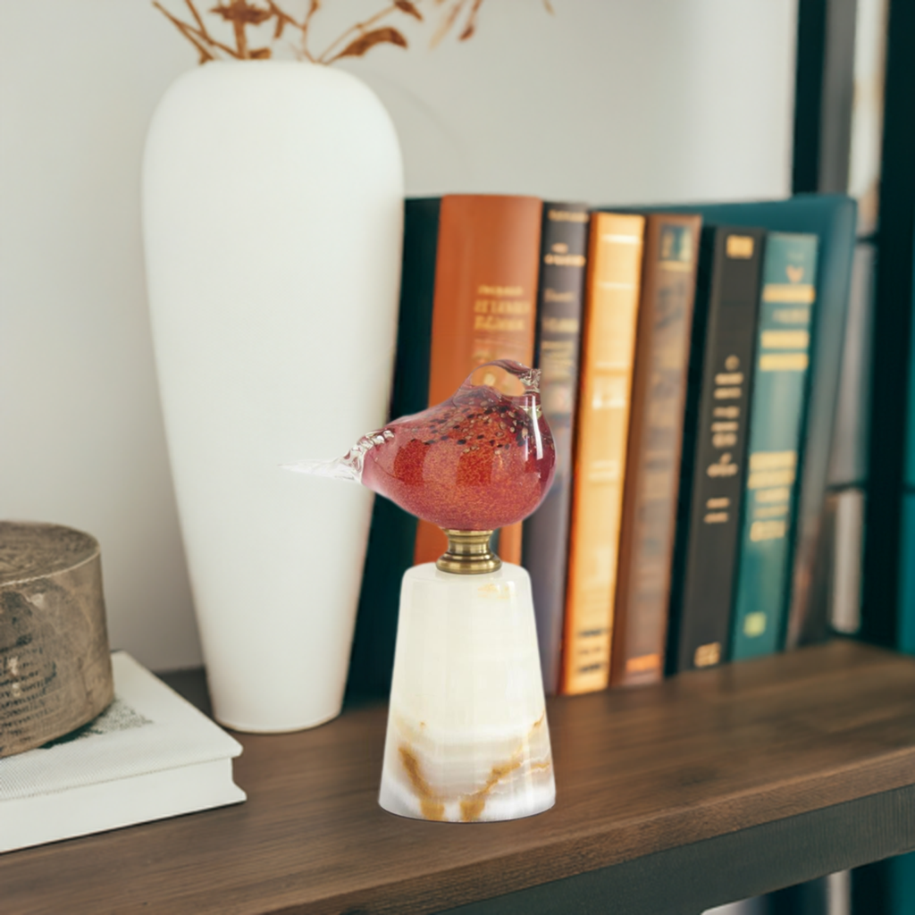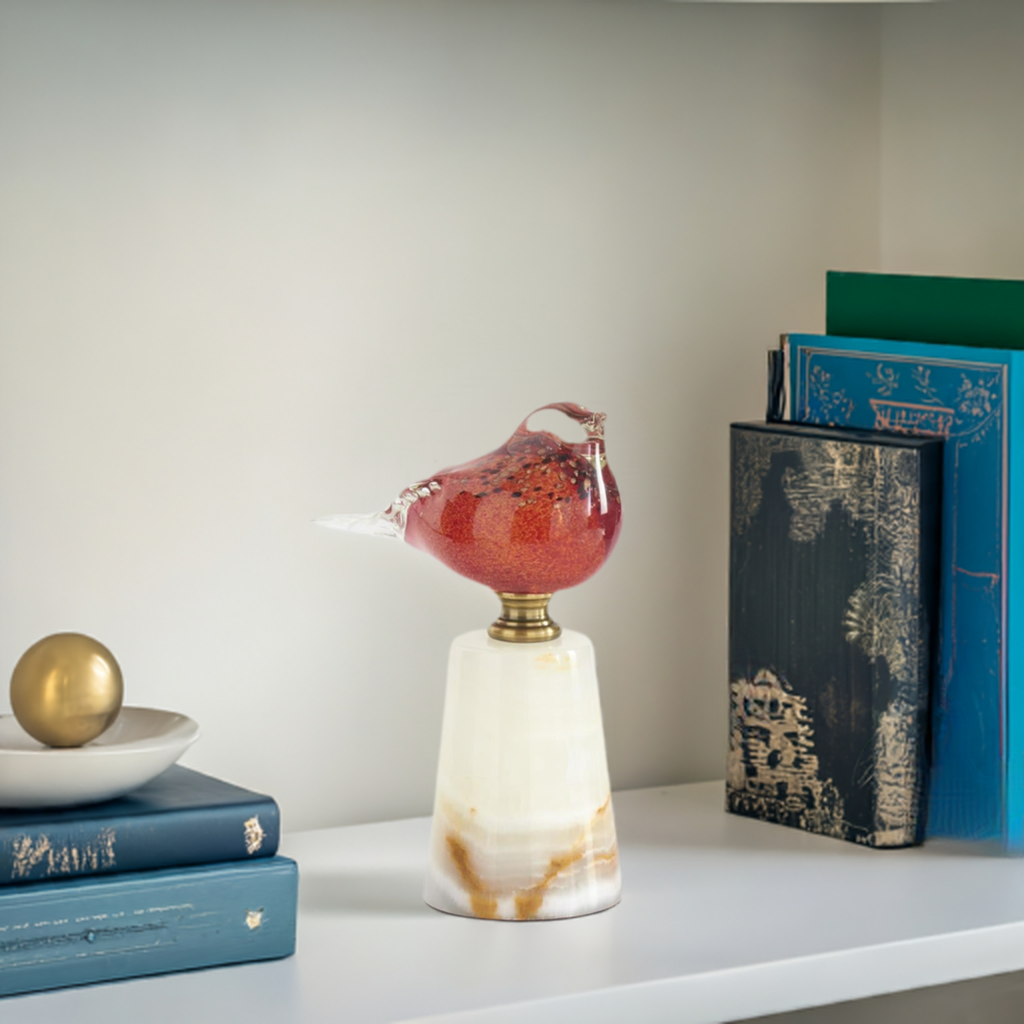 - Vibrant red glass bird: Adds a pop of color and visual interest.