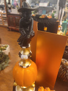 Resin Black, White, Orange & Gold Finial w/Witch Top