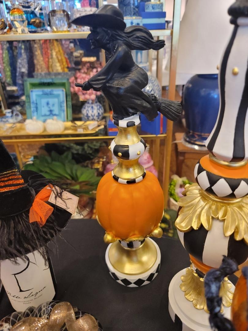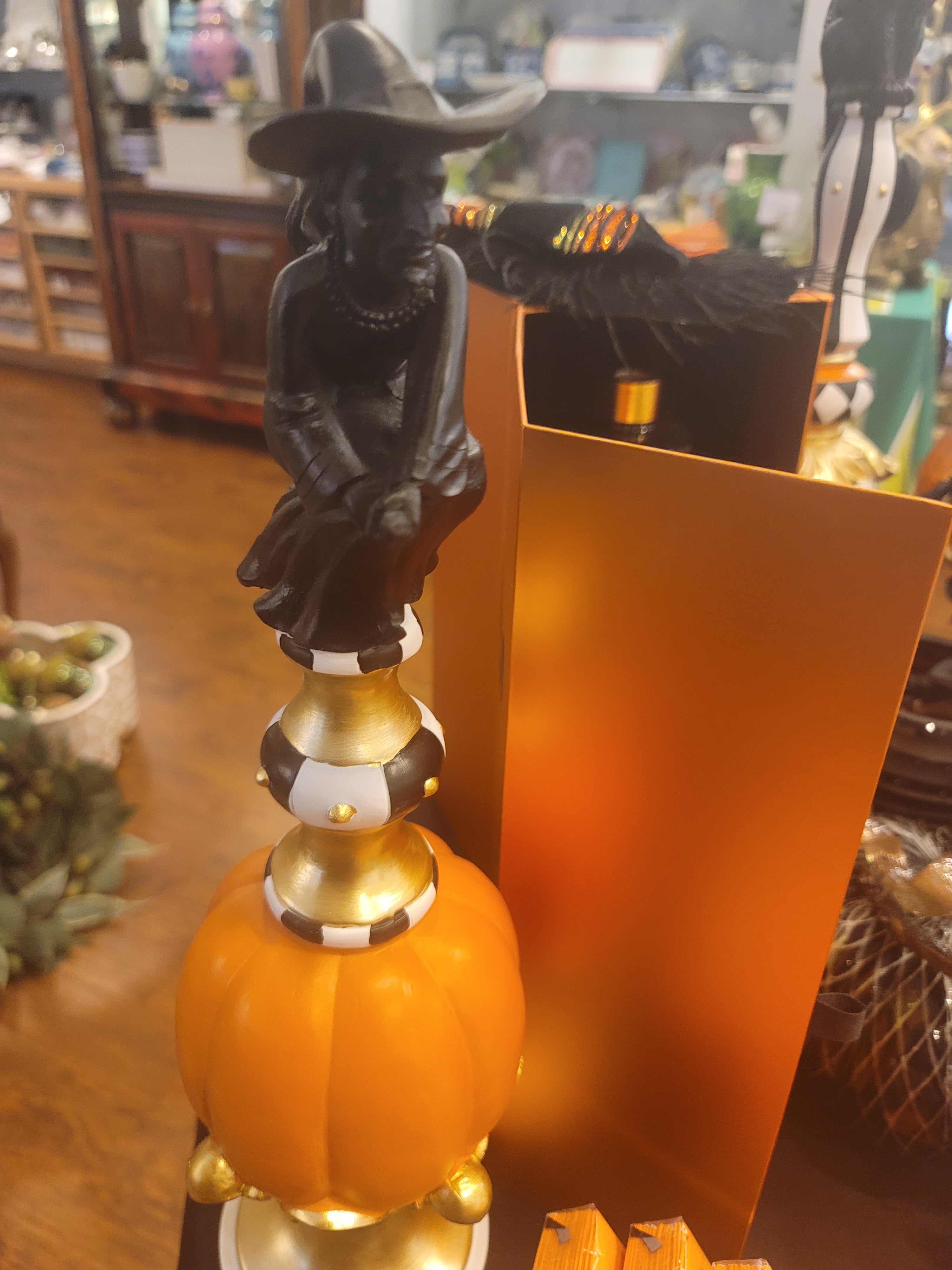- Resin Black, White, Orange & Gold Finial w/Witch Top