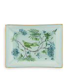 Experience the lush beauty of Aquazzura Casa's latest homeware collection, the Secret Garden dinner plate, which features intricate designs inspired by 18th-century Chinese porcelain. Immerse yourself in a world full of vitality and wonder, as you are surrounded by vibrant colors and depictions of leaves, flowers, butterflies, and birds in this stunning piece of tableware.