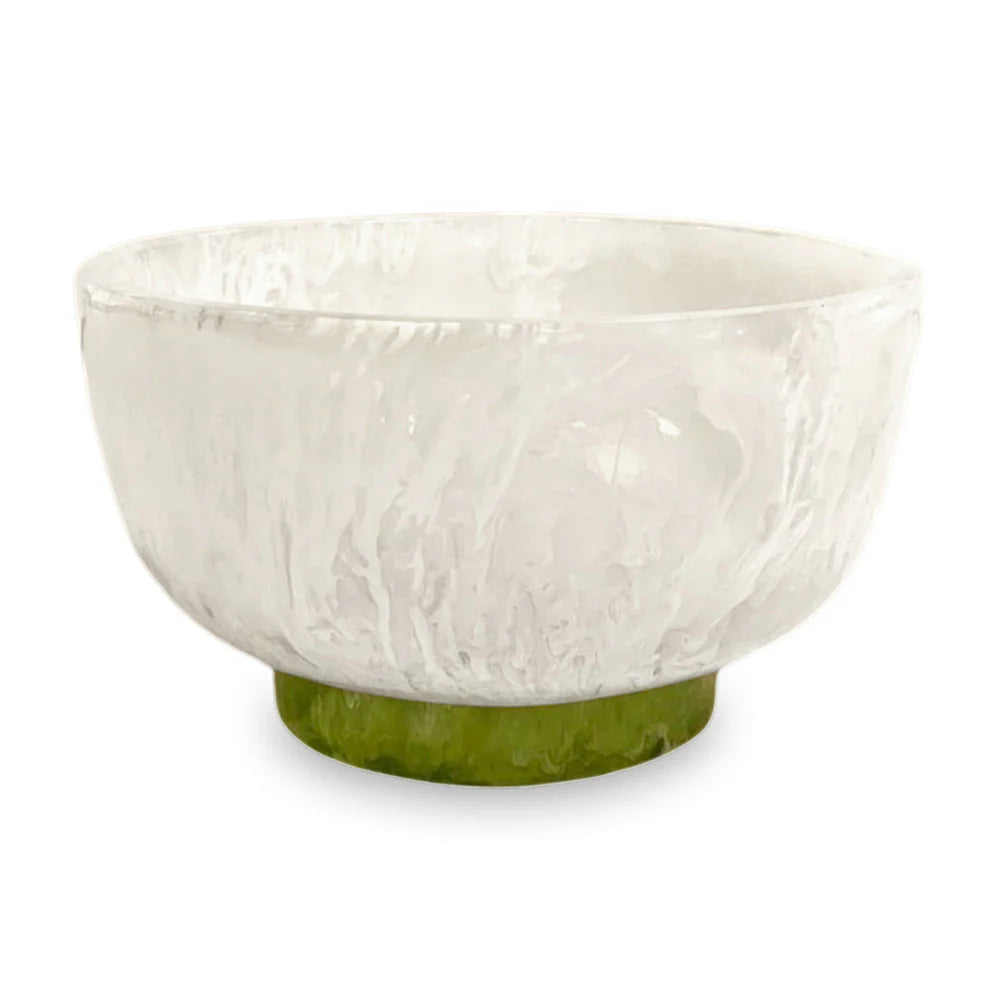 Elevate your table setting with the Beatriz Ball VIDA Rio Small and Large Bowls' with Base, available in a range of vibrant color combinations: White and Green, Blue and Green, Pink and Orange, and Green and Blue. Measuring 7" x 7" x 4", this bowl combines artisanal craftsmanship with functional versatility, making it a perfect addition to any dining or decorative display.