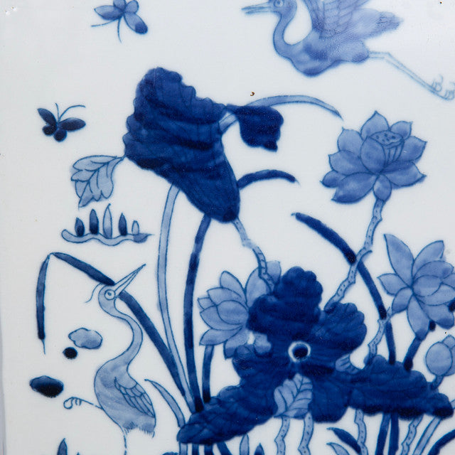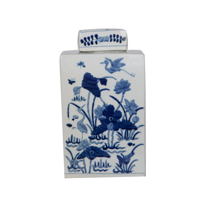 Blue and White Square Tea Jar - Bird and Floral Motif