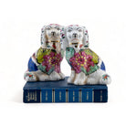 Add a twist to classic elegance with this charming pair of Staffordshire porcelain spaniels, adorned in a rich and vivid tobacco leaf pattern. Inspired by the timeless appeal of Staffordshire dogs, these petite companions stand approximately 6 inches tall, making them the perfect accent for any mantel or shelf.