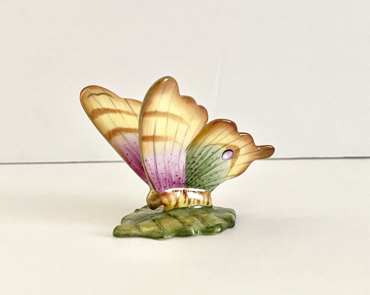 Crafted with exquisite detail, the butterfly features graceful wings edged in hand-applied 24k gold, adding a luxurious gleam that catches the light beautifully. Each piece is signed by the artist who painted it, underscoring its authenticity and making it a true collector’s item. Though compact in size—standing 2 inches high and 2.5 inches wide—this piece carries a strong visual presence, perfect for adding a touch of whimsy and sophistication to any setting.