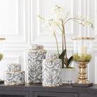 Introducing the alluring Black White & Gold Swinging Lady Ginger Jar, a set of three exquisite ginger jars crafted with elegance and sophistication. Adorned with a striking swing lady design, these jars bring a touch of luxury to your décor. Made from high-quality ceramic, the varying sizes allow for versatile styling. Elevate your space with these exclusive K&K pieces, perfectly combining art and practicality. Choose the perfect accents for your home with the Black White & Gold Swinging Lady Ginger Jar. These beautifully crafted ceramic jars bring an air of sophistication to your décor. With their unique swing lady design, they serve as both functional storage and elegant art pieces. Versatile in size, they allow for personalized styling and are a must-have for any luxury home. Elevate your space with the timeless beauty and functionality of exclusive collection.