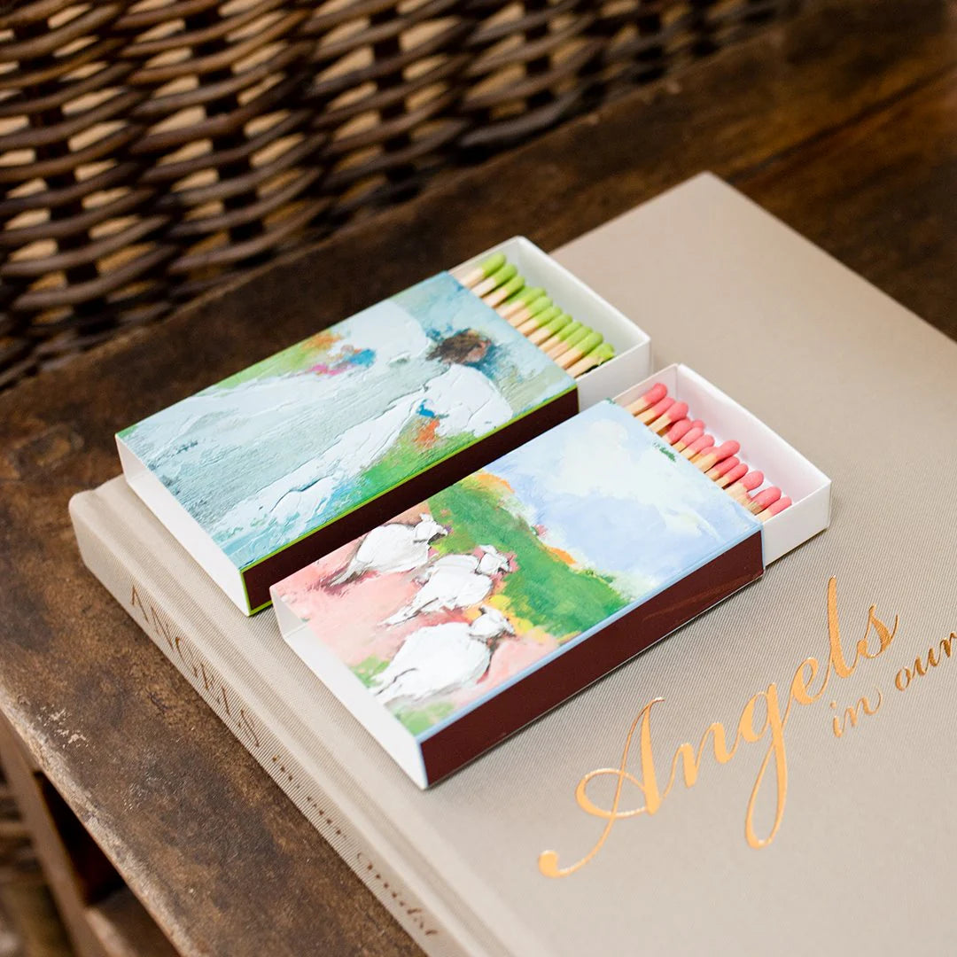 Illuminate your space with The Good Shepherd Matches, a blend of art and utility. This thoughtfully designed matchbox measures 4.25" L x 2.5" W x 0.75" H and contains 50 premium 4" matchsticks with easy-strike tips for a reliable light every time. Featuring Anne Neilson’s beloved The Good Shepherd painting on the cover, this matchbox is as beautiful as it is practical—a true conversation piece for any home.