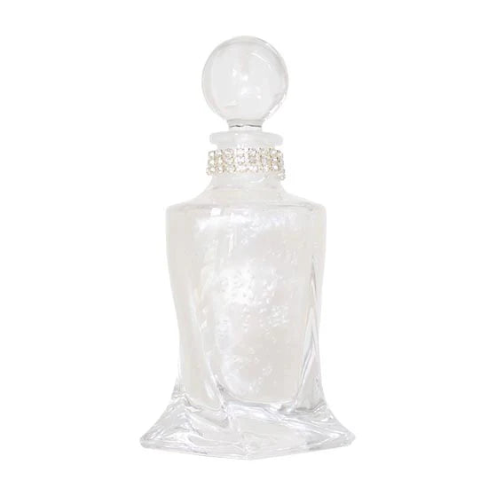 Lady Primrose’s Tryst Bath Gel is an invitation to indulge in a luxurious moment of self-care, presented in a whimsical petite decanter that captures both style and grace. This exquisite glass vessel, standing seven inches tall with a slender two-inch base, is adorned with delicate hand-applied Tryst crystals, adding a regal sparkle that makes it a beautiful keepsake as much as a bath essential. Inside, the pearlescent bath gel shimmers softly, promising a sensorial experience that delights both the eyes and the skin.