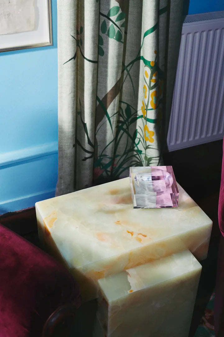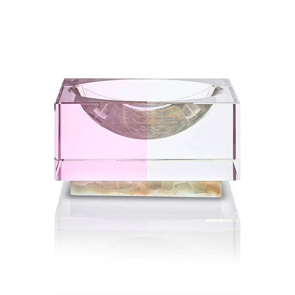 A harmonious union of material and meaning, the Utopia Bowl pairs the raw, tactile beauty of granulated Onyx with the sleek brilliance of transparent crystal. The richly textured Onyx, with its natural markings and intricate veining, brings an organic vitality to the piece—each stone bearing its own story, shaped by the earth over millennia. In contrast, the crystal's pristine clarity and geometric form provide a striking modern counterbalance, highlighting the individuality of each element.