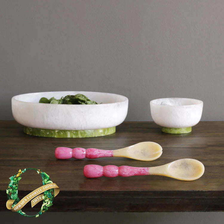 Elevate your table with the artistry of the VIDA Resin Large Oval Bowl by Beatriz Ball. Available in Blue with Green Base, Green with Blue Base, and White with Green Base, this stunning piece combines modern design with timeless functionality.