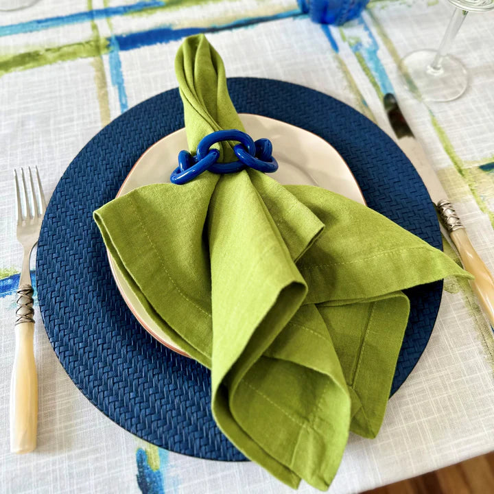 Whether you're creating a refined tablescape for a dinner party or adding a pop of color to a festive gathering, these Wicker Charger Plates in Green and Navy offer the perfect balance of beauty and functionality, making your table look effortlessly stylish for any occasion.