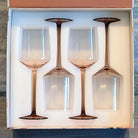 Each glass in this set is a one-of-a-kind masterpiece, beginning as a glowing orb of molten glass before being skillfully shaped into its stunning final form. This set features four rich, earthy glasses, each inspired by the warm, rustic tones of Vermont’s iconic covered bridges. With deep browns and golden undertones reminiscent of weathered wood and autumn’s cozy charm, these glasses bring a touch of timeless elegance to every sip. Packaged in a luxurious gift box, this set of four is perfect for your home or as a thoughtful gift!