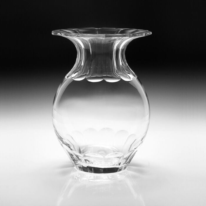 Delpha Vase Delpha is a wonderful piece of handmade and hand cut crystal, with classical flat cuts and a pretty cut out top. This charming vase is available in two sizes 10" and 12½". It is a lovely design and is a great statement piece with or without flowers! An intricate and striking piece for any room. With its handcrafted crystal and elegant design, DELPHA VASE is a versatile and timeless addition to your home décor. Available in two sizes, it's perfect for adding a touch of luxury and sophistication to any space.- Delpha Vase